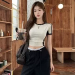| nameOriginal | Contrast color drawstring workwear wide-leg casual pants short-sleeved T-shirt |