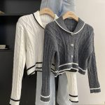 سترة نسائية بأكمام طويلة وملمس بحافة متباينة اللون لخريف 2024 على الطراز الكوري سترة قصيرة تناسب الجميع
