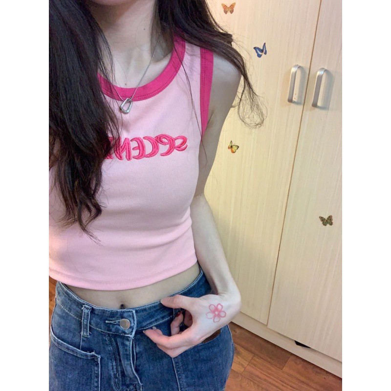| nameOriginal | Contrast Color Letter Embroidered Vest Women's Xia Gong Character Sling Short Slim-fit Inner and Outer Wear Spice Girl Slim-fit Sleeveless Top |