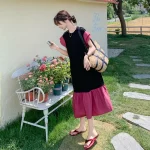 | nameOriginal | Contrast color slightly fat and elegant loose dress that covers the belly and looks slimming |