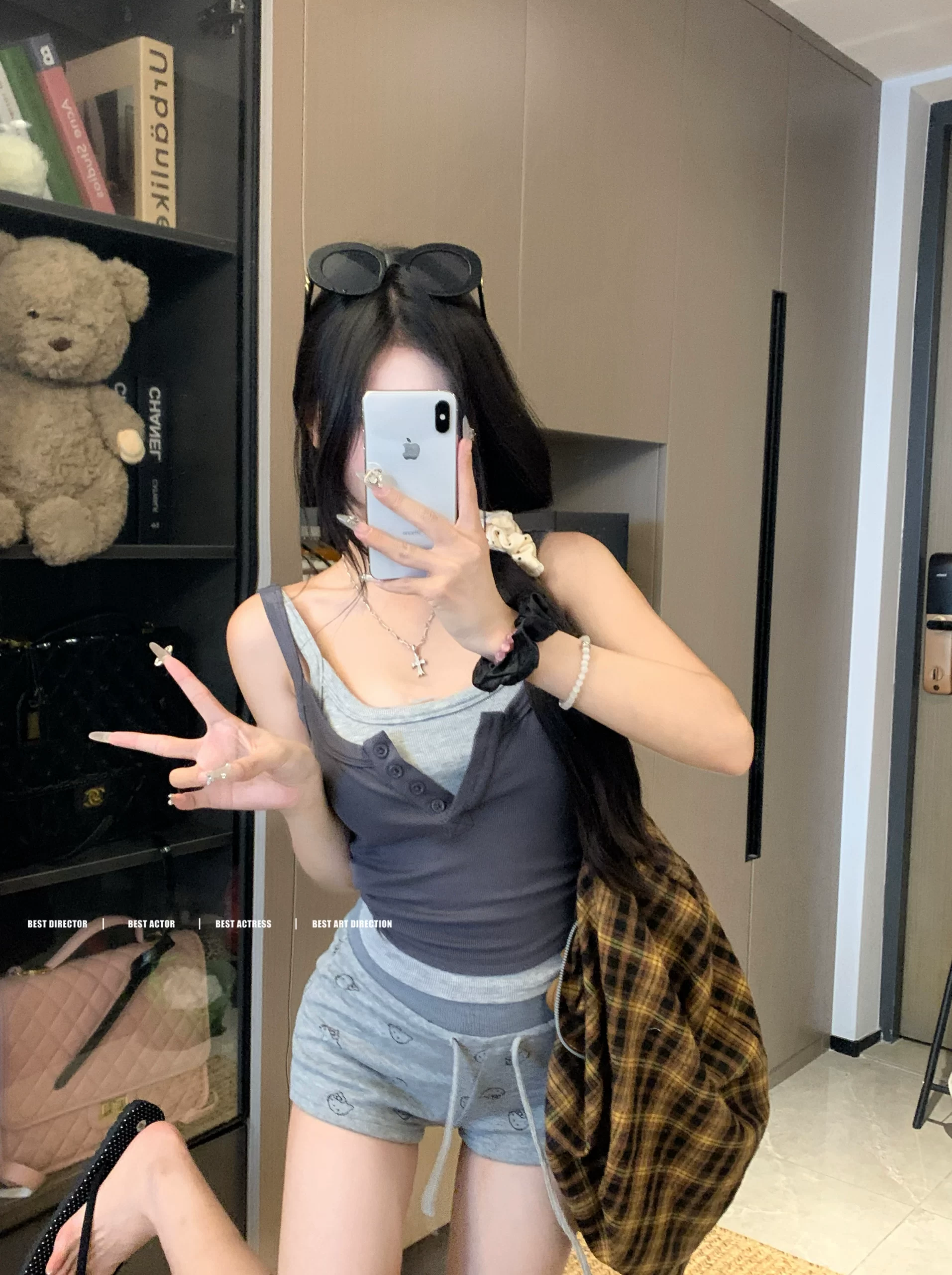 | nameOriginal | Contrast color small camisole, slim fit and exposed navel fake two pieces |