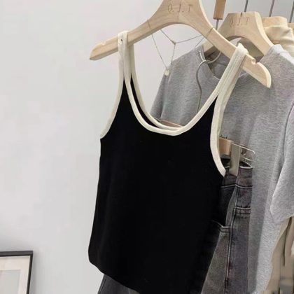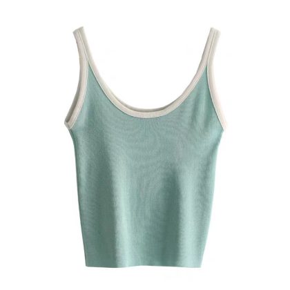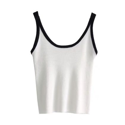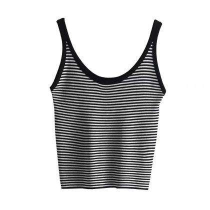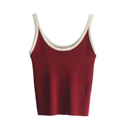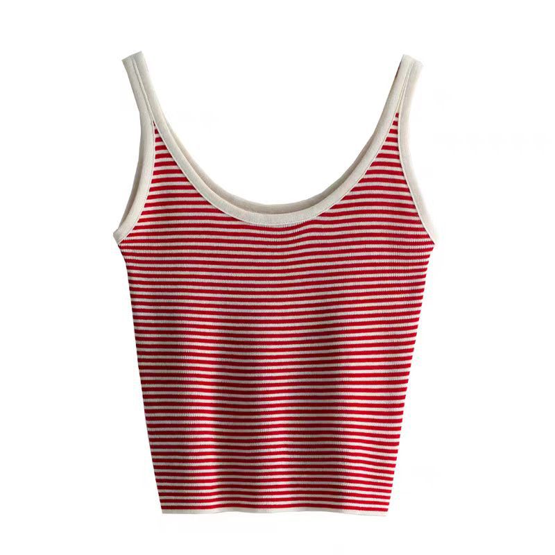 | nameOriginal | Contrast Color Stripe Slim-fit All-match Outer Wear Knitted Vest Women's Summer Inner Wear Korean-style Short Base Red Sling |