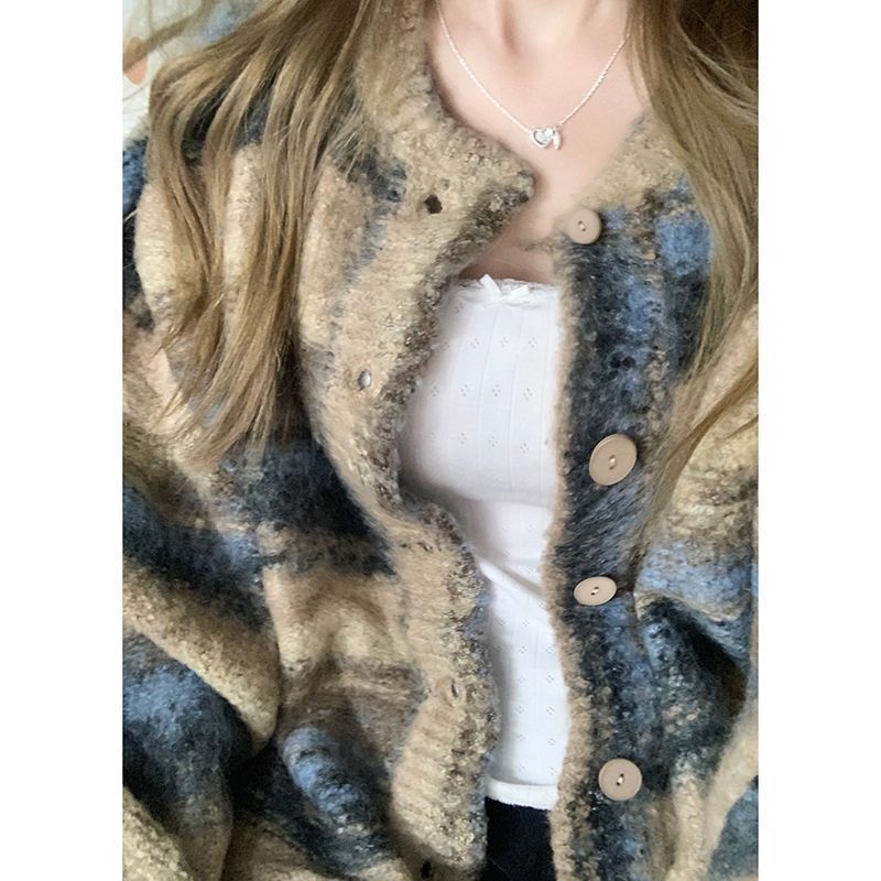 | nameOriginal | Contrast Color Sweater Autumn and Winter Women's 2024 New Explosions Lazy Style Knitted Cardigan Striped Loose Retro Japanese Jacket |