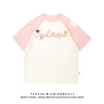 Contrast color three-dimensional casual couple wear printed short-sleeved T-shirt