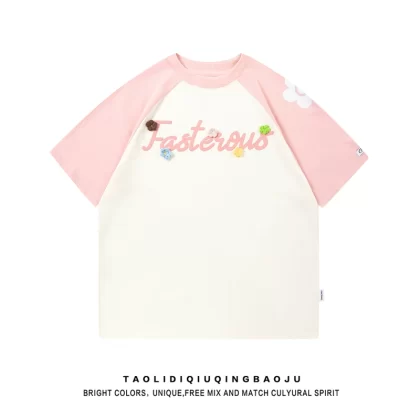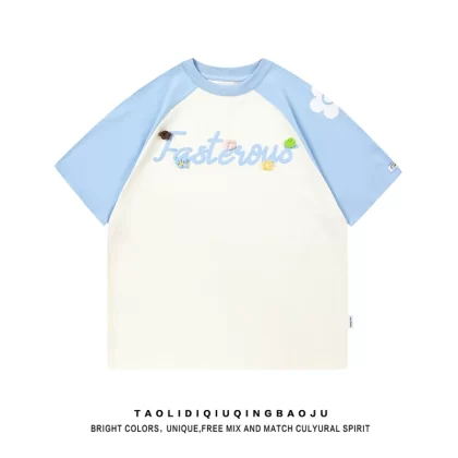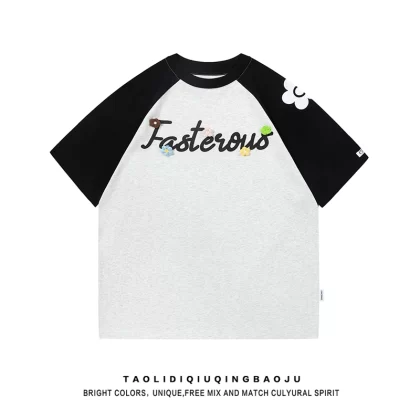Contrast color three-dimensional casual couple wear printed short-sleeved T-shirt