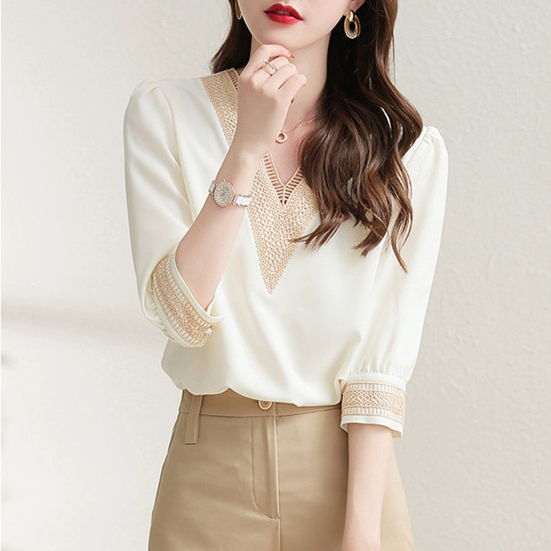 | nameOriginal | Contrast embroidered V-neck mid-sleeve loose chiffon lace |