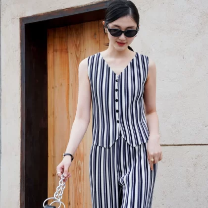 | nameOriginal | Contrast striped sleeveless casual two-piece vest |
