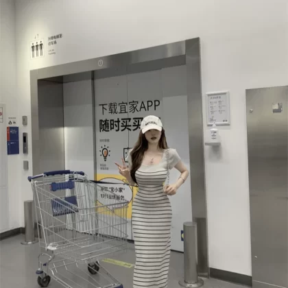 | nameOriginal | Contrast striped summer short-sleeved pullover knitted dress |
