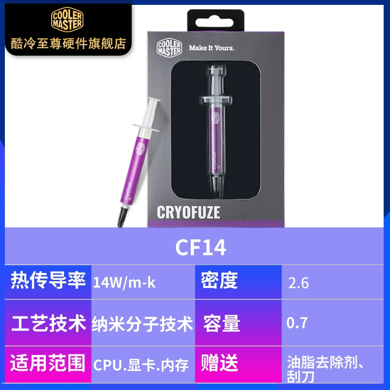| nameOriginal | Cooler Master CF14 thermal paste computer CPU graphics card notebook cooling silicone grease thermal conductivity up to 14W |