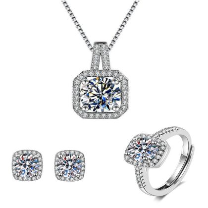 | nameOriginal | Copper inlaid zircon fast hand TikTok live jewelry suit Princess Square bag necklace female ring earrings fashion three-piece set |