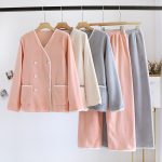 | nameOriginal | Coral Fleece Pajamas Women's Autumn and Winter New Simple Double-breasted Thickened fleece-lined Flannel Warm Home Clothes suit |