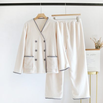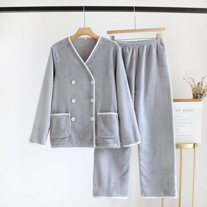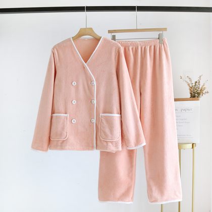 | nameOriginal | Coral Fleece Pajamas Women's Autumn and Winter New Simple Double-breasted Thickened fleece-lined Flannel Warm Home Clothes suit |