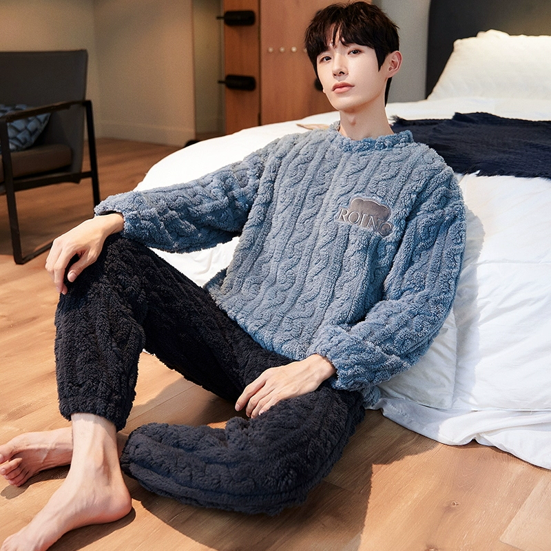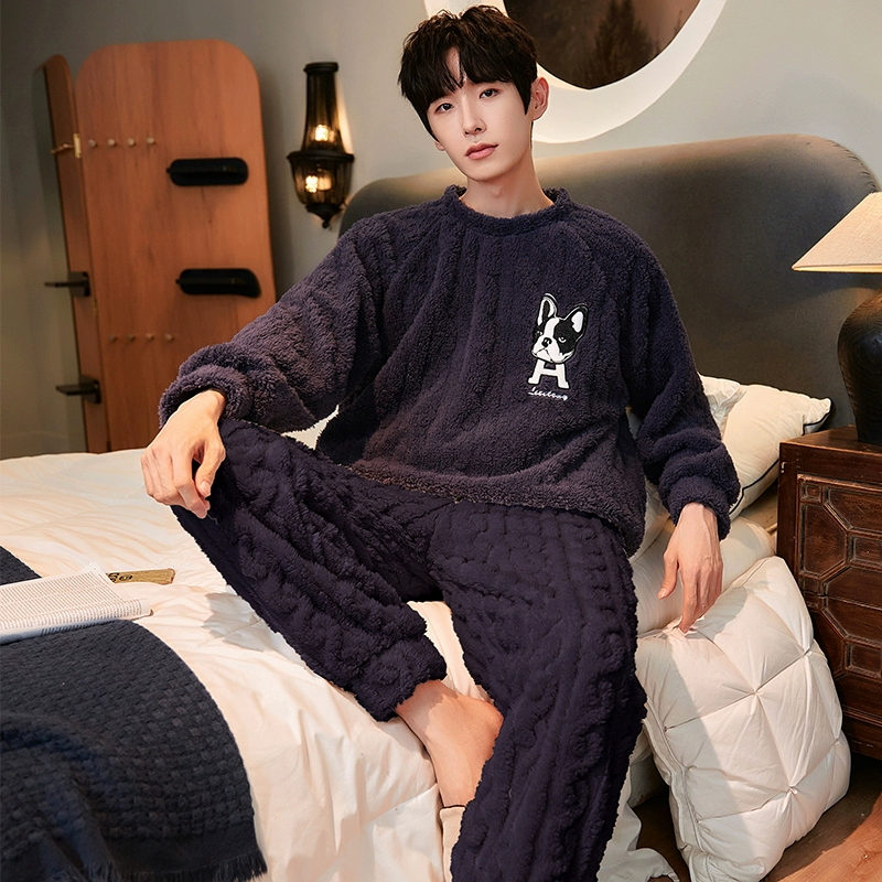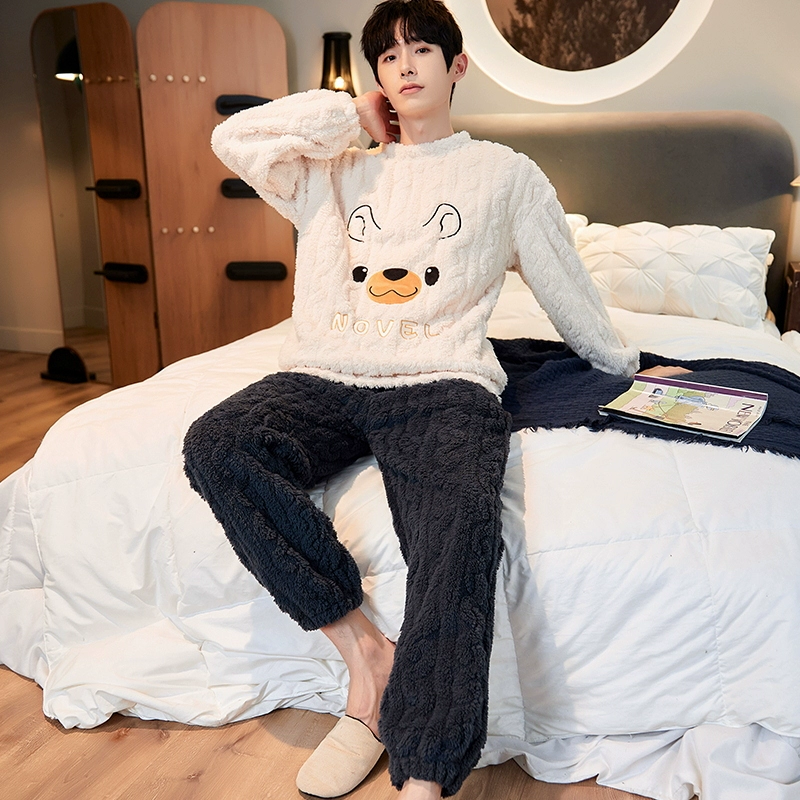 Coral velvet couple pajamas winter thickened velvet women's new autumn and winter flannel men's cartoon large size suit