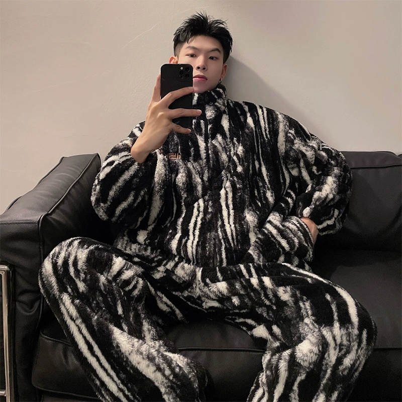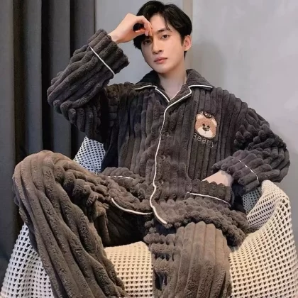| nameOriginal | Coral velvet men's Japanese ins striped winter pajamas |