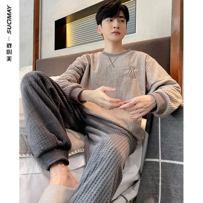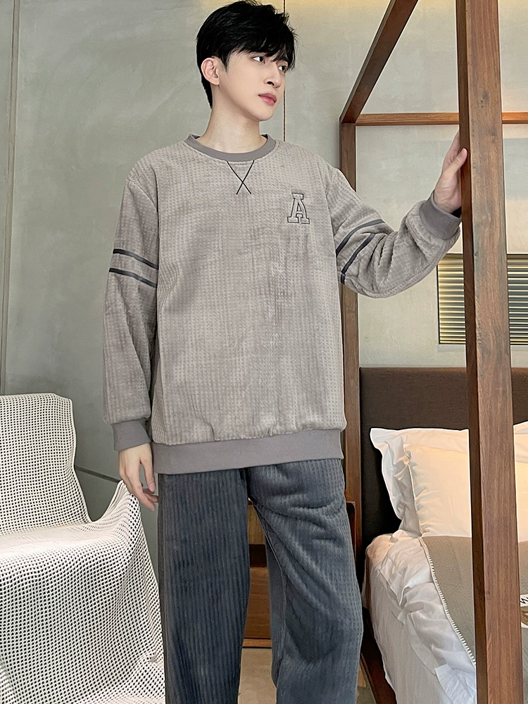 | nameOriginal | Coral velvet men's pajamas autumn and winter plus velvet thickening winter flannel suit home clothes men's pullover winter |