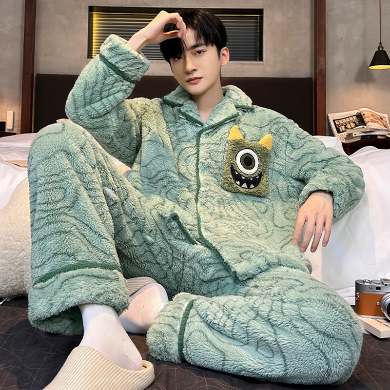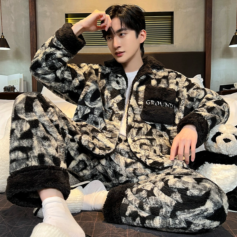 Coral velvet men's thickened warm student winter pajamas