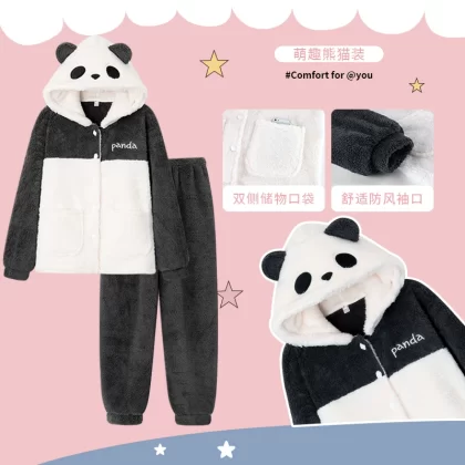 | nameOriginal | Coral velvet pajamas couple wear for one man and one woman in autumn and winter plus velvet and thickened cartoon panda winter warm home clothes |