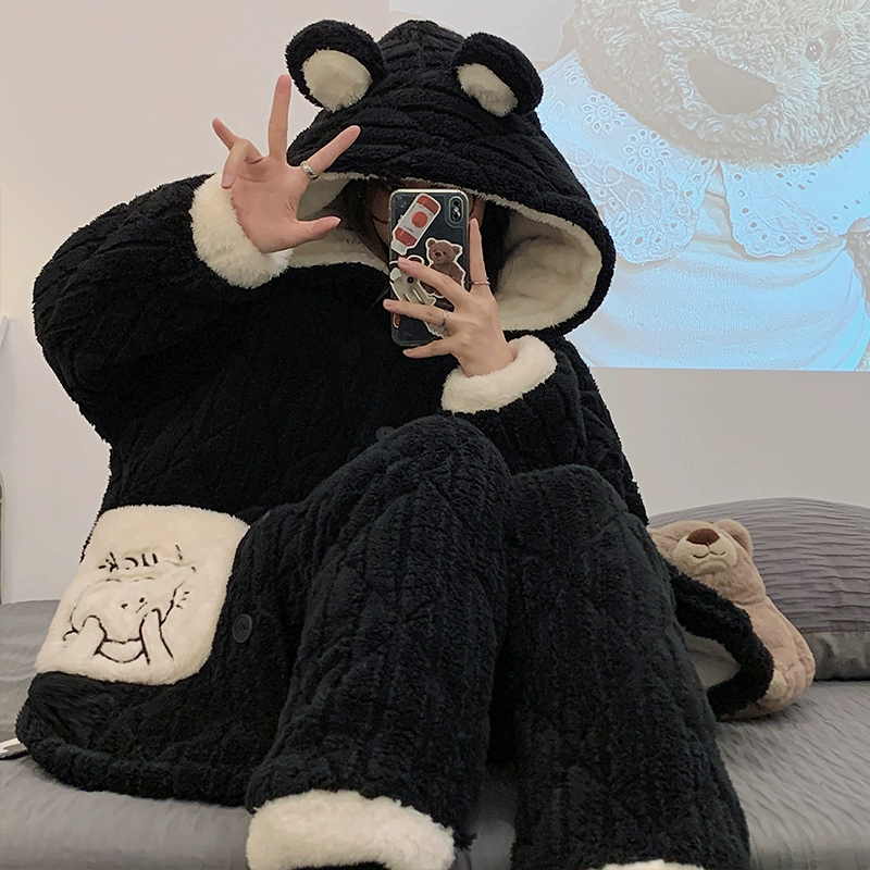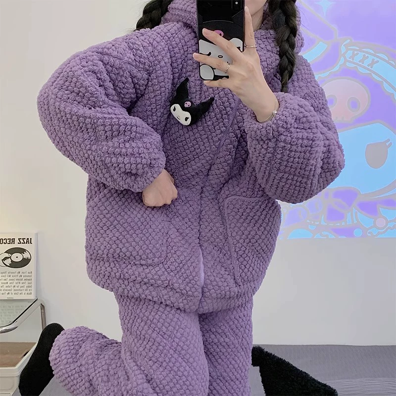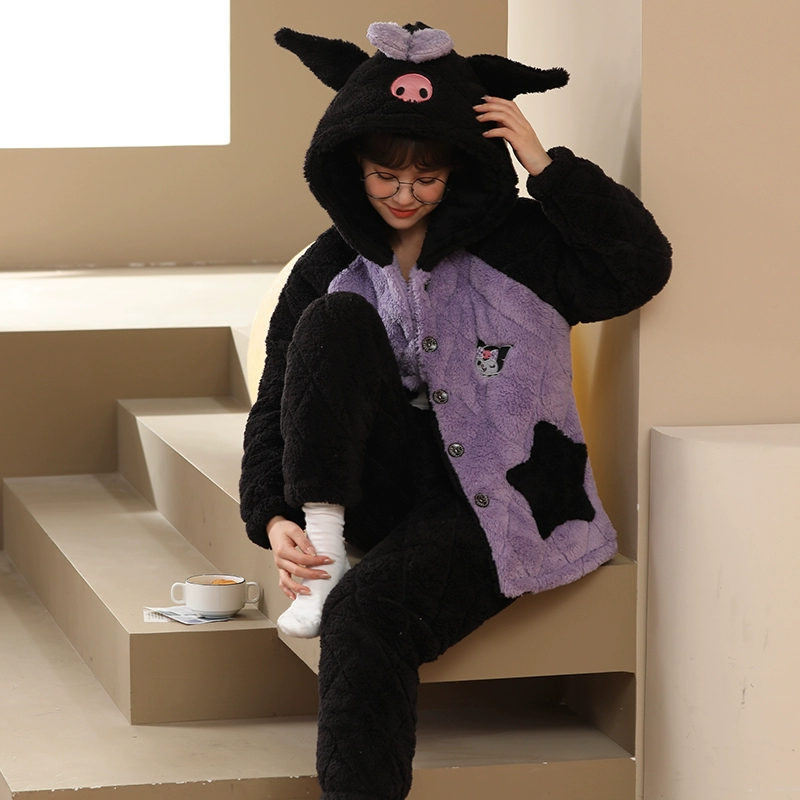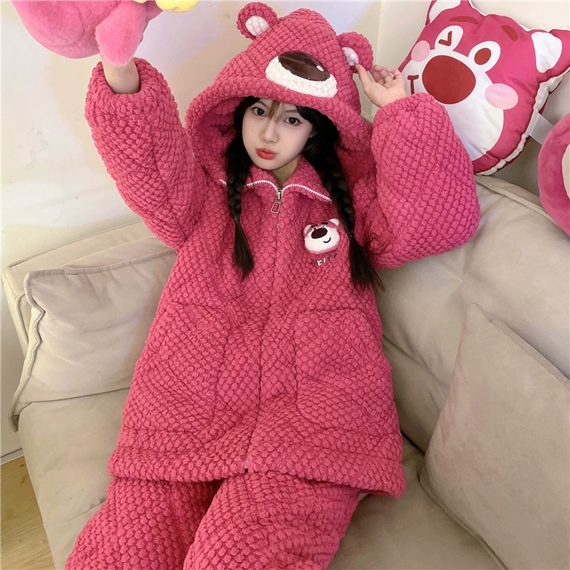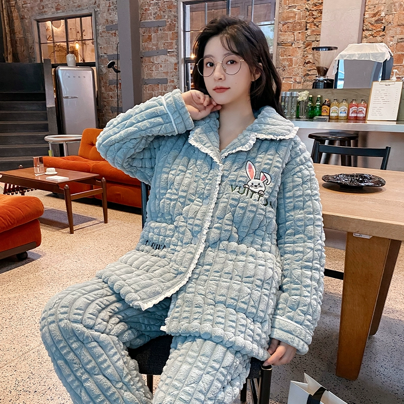 | nameOriginal | Coral velvet pajamas for women winter plus velvet thickening autumn 2024 new three-layer quilted jacket autumn and winter home wear set |