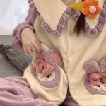 | nameOriginal | Coral velvet pajamas for women winter spring and autumn thickened plus velvet women's long-sleeved cardigan warm flannel home wear set |