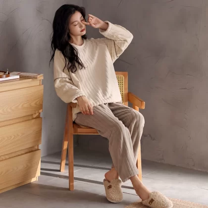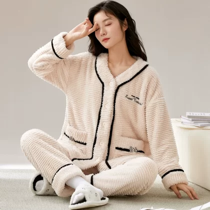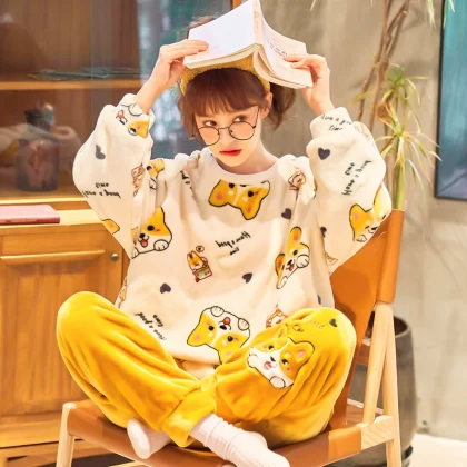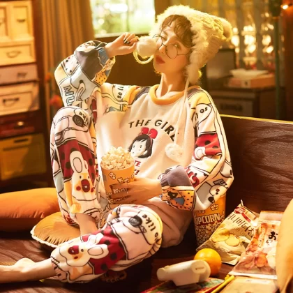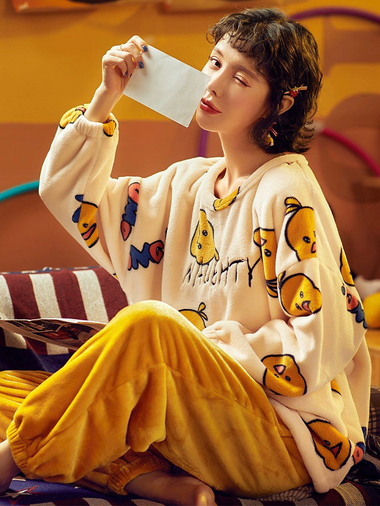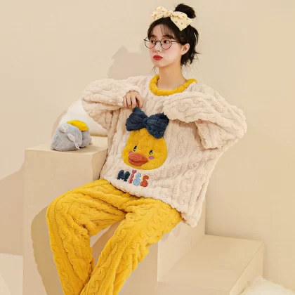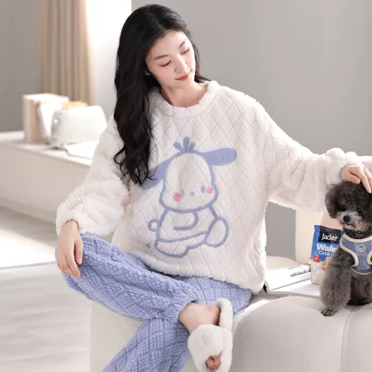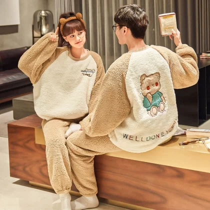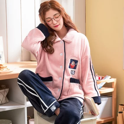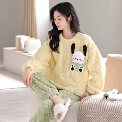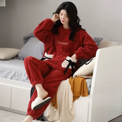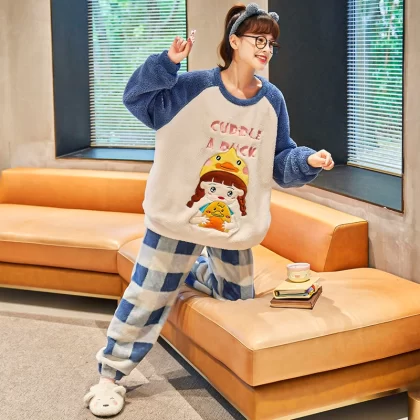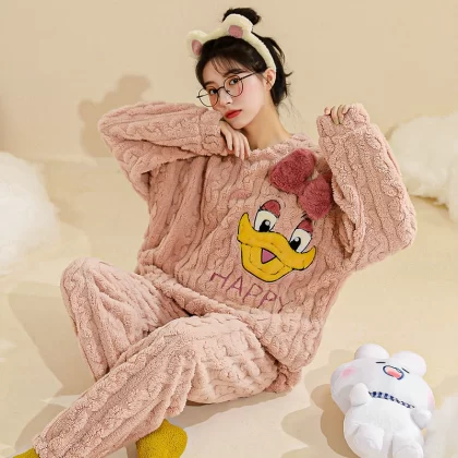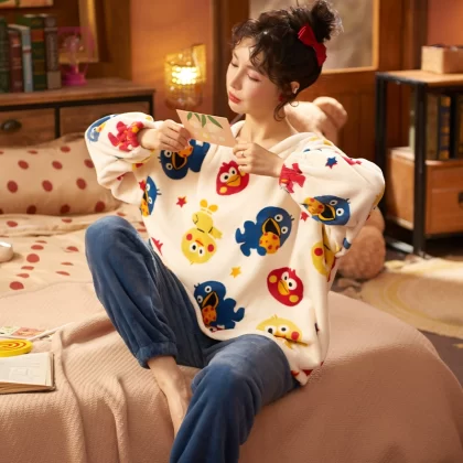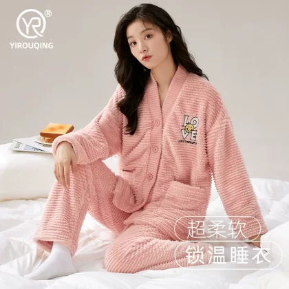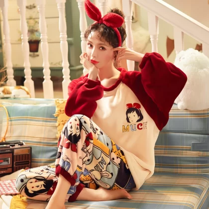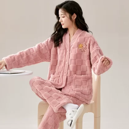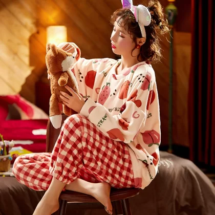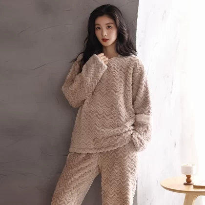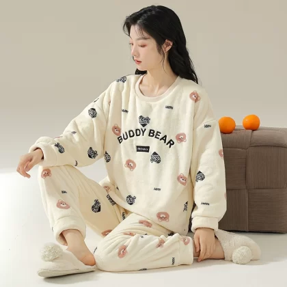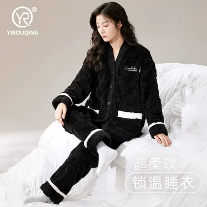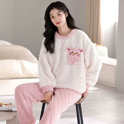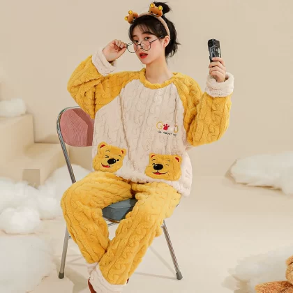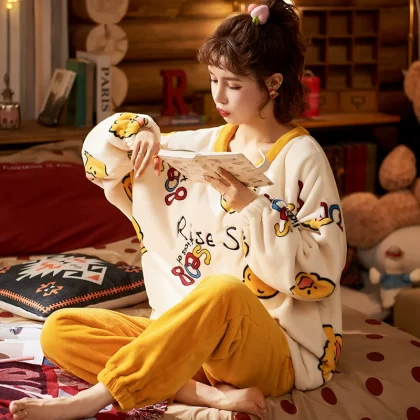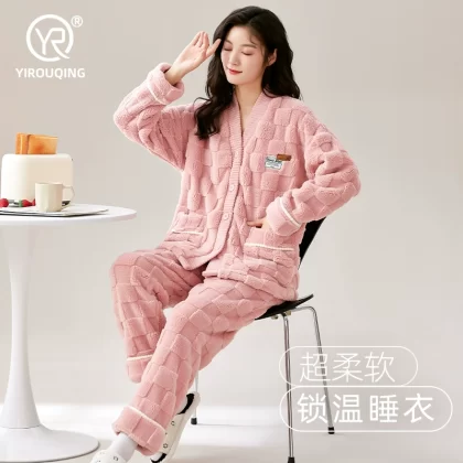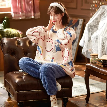 | nameOriginal | Coral velvet pajamas for women winter thickened plus velvet home clothes flannel 2024 new warm suit spring, autumn and winter |