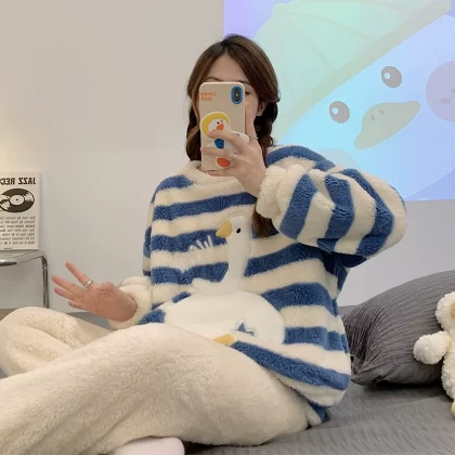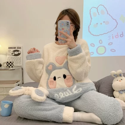 Coral velvet pajamas for women, winter thickened plus velvet home clothes, flannel autumn and winter cute plush warm suits