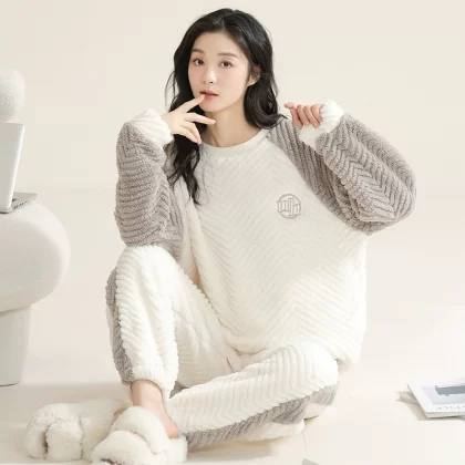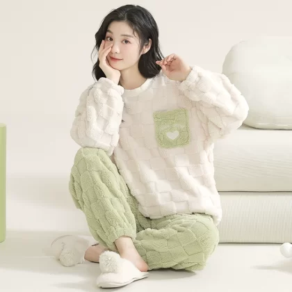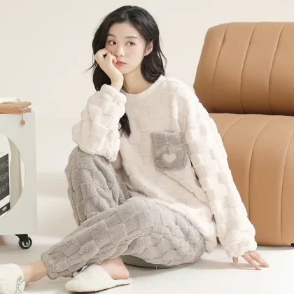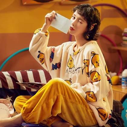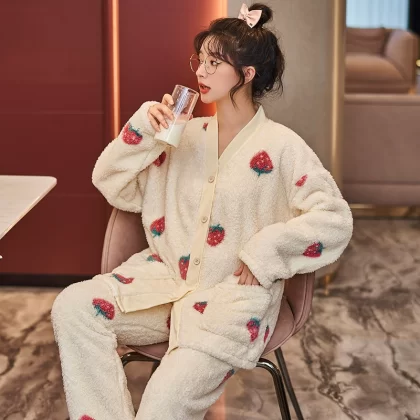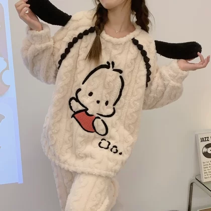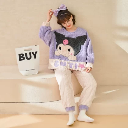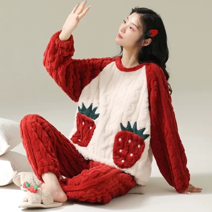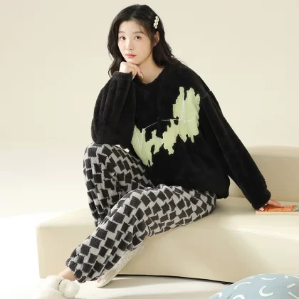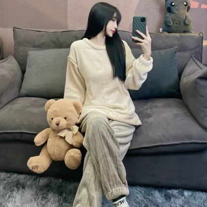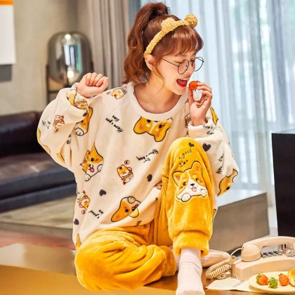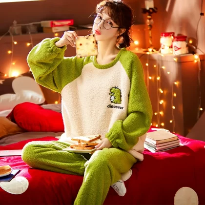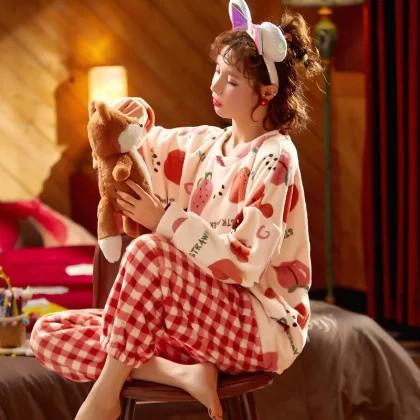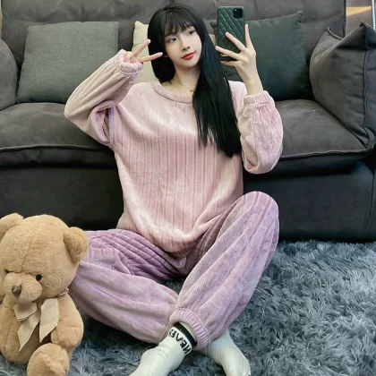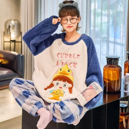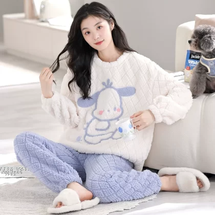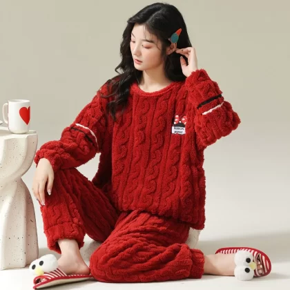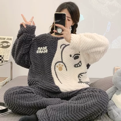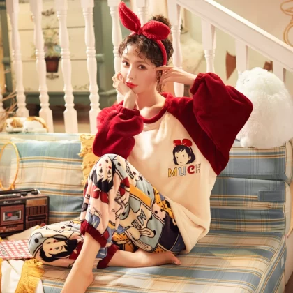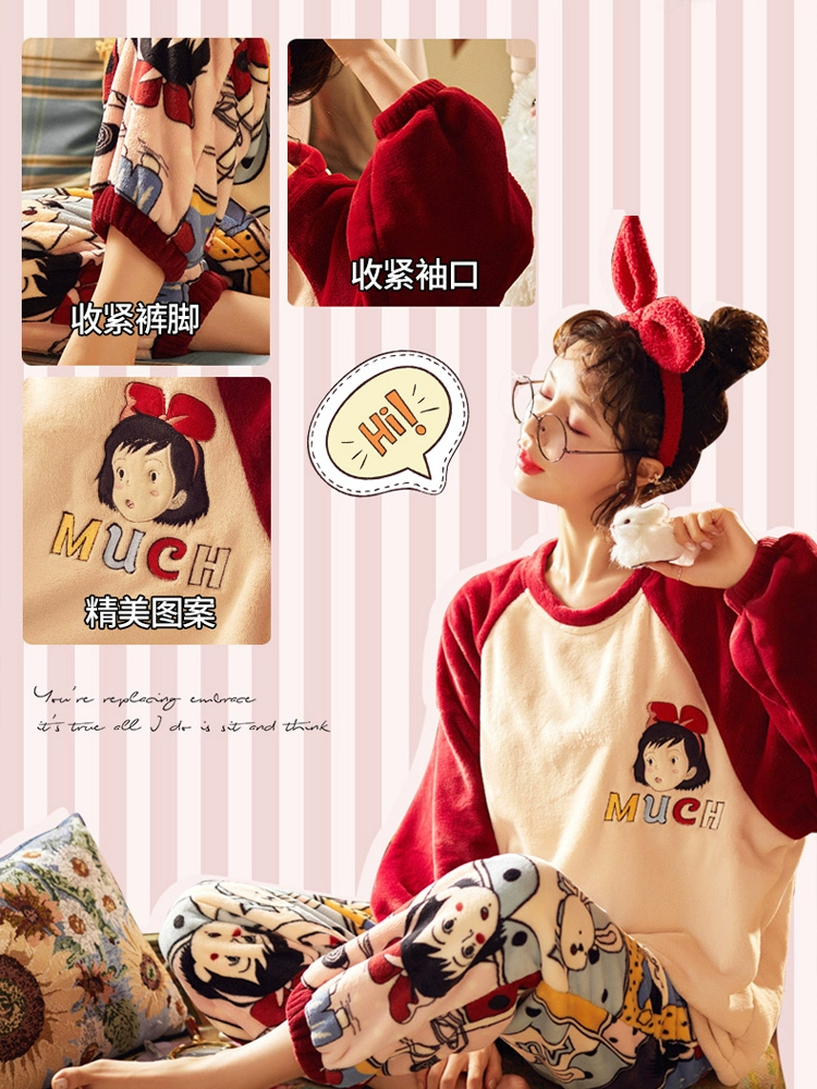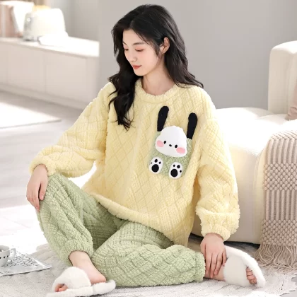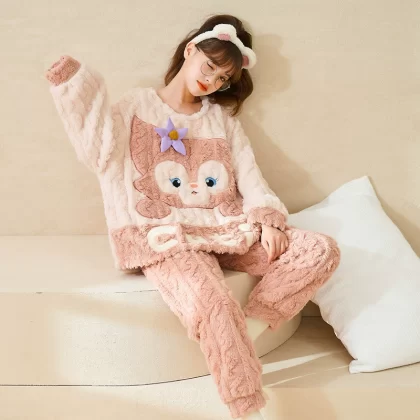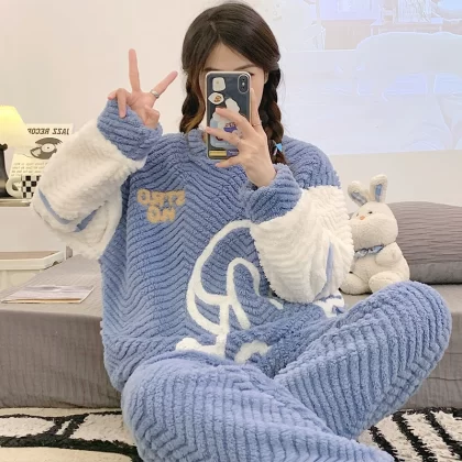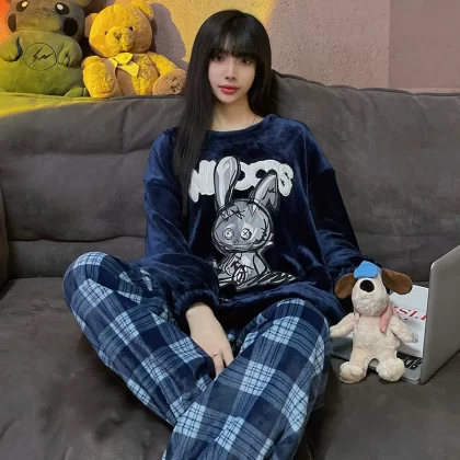 | nameOriginal | Coral velvet pajamas for women winter thickened plus velvet warm women's 2024 new flannel cute home wear set |