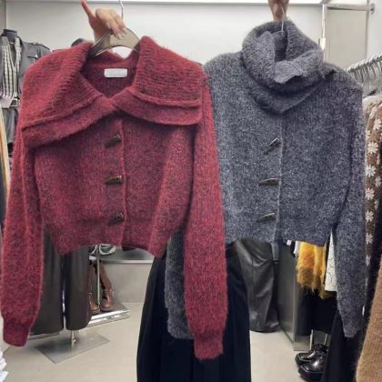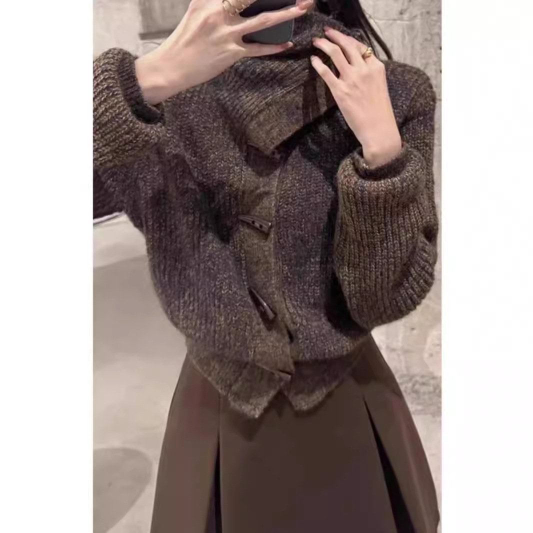 | nameOriginal | Corner buckle lapel sweater cardigan women's 2024 autumn and winter new women's fashion high collar short thick coat coat |