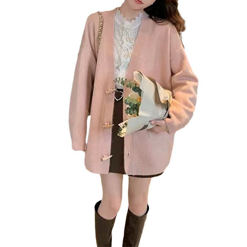 | nameOriginal | Corner Button Knitted Coat Women's V-Neck Loose Lazy Style Outer Wear Autumn and Winter All-match Western Style Simple Sweater Cardigan |
