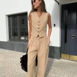 | nameOriginal | Cotton and linen commuter V-neck vest and trousers two-piece summer Linen Pants Set Sleeveles 2 Piece |