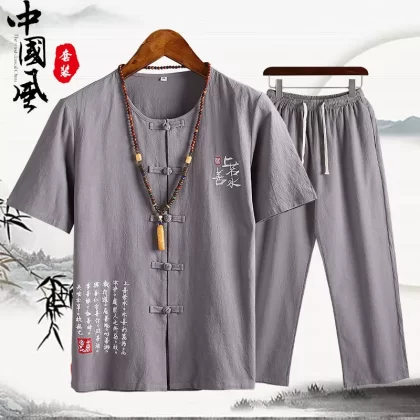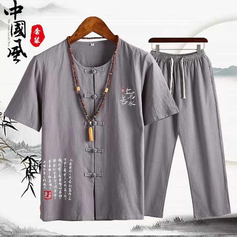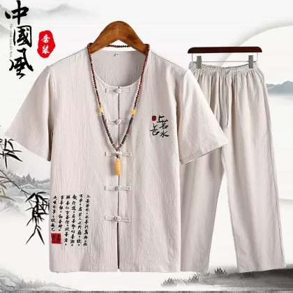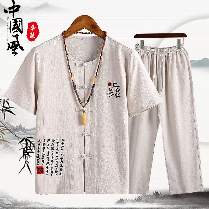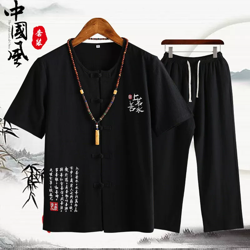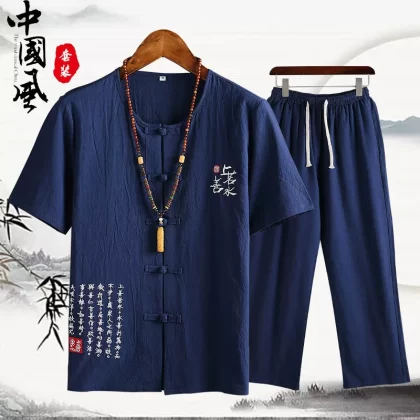 | nameOriginal | Cotton and linen middle-aged father's trousers, Tang suit short-sleeved T-shirt |