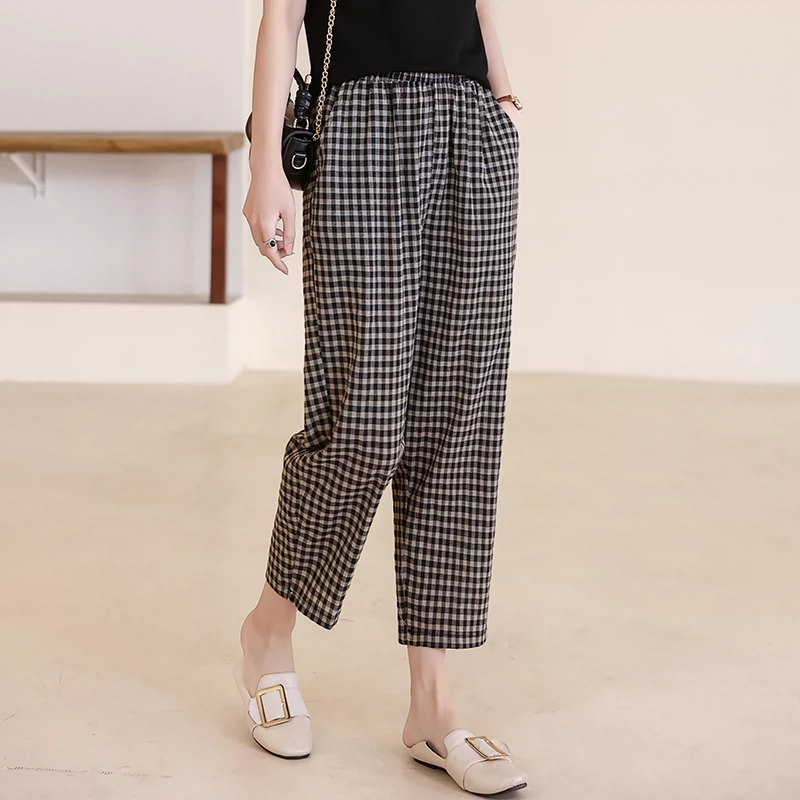 | nameOriginal | Cotton and linen middle-aged mother's elastic waist casual nine-point pants |