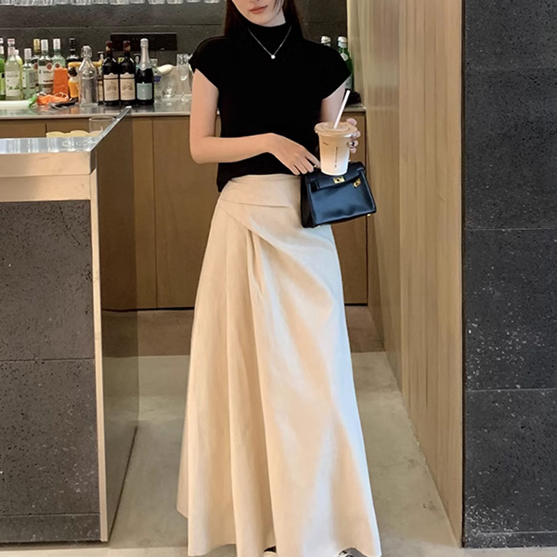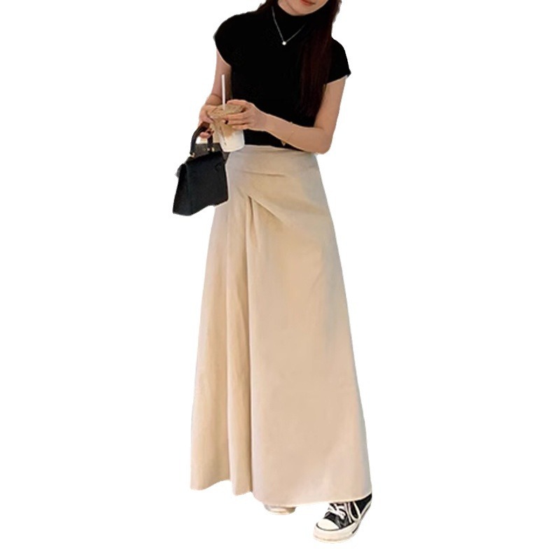 | nameOriginal | Cotton and Linen Texture Pleated Large Skirt Skirt Women's 2024 Summer New Style Lazy Casual Slimming All-match Long Skirt |