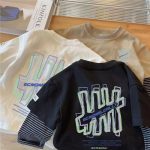 | nameOriginal | Cotton Boys' long-sleeved T-shirt 2023 autumn Korean style loose children's cartoon fake two-piece autumn clothes men's baby bottoming shirt |
