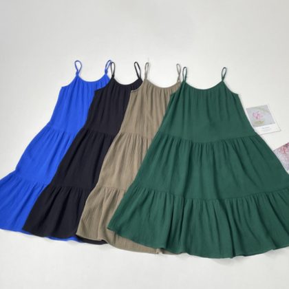 تنورة بحمالة بسيطة قابلة للتنفس من القطن الفرنسي على شكل حرف A بلون سادة