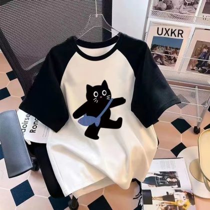 | nameOriginal | Cotton Girls' Short-sleeved T-shirt Slaffed-shoulder 2024 Summer New Loose Western Style Big Kids Instagram Top Base Shirt |