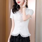 | nameOriginal | Cotton High-end Ruffled Summer Women's 2023 New Western Style Shirt All-match Slim-fit Slimming Age-reducing Short-sleeved Top |