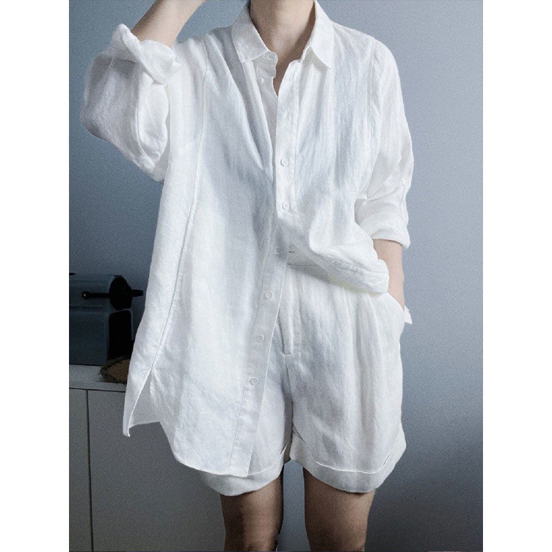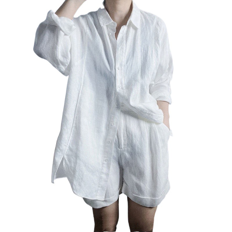 | nameOriginal | Cotton Linen 2024 Spring and Summer Light Luxury Fashion Simple Commuting Sunscreen Shirt Fresh Shirt Shorts suit Women |