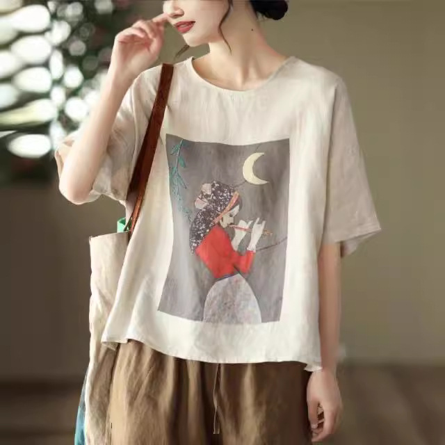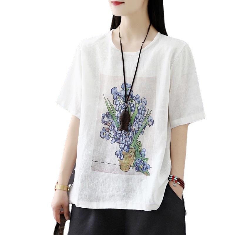 | nameOriginal | Cotton Linen T-shirt Women's Short-sleeved 2023 Summer New Women's Top Loose Retro Printed Large Size Women's T-shirt Trendy |