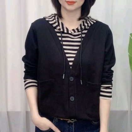 | nameOriginal | Cotton New Autumn Women's Wear Slimming Age-reducing Design Sense Long Sleeve Top Fake Two-piece Hooded Sweat for Women |