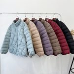 معطف مبطن بالقطن ملابس خارجية قصيرة للنساء من القطن معطف نسائي بلون سادة للخريف والشتاء معطف دافئ بياقة واقفة وسميكة جديدة
