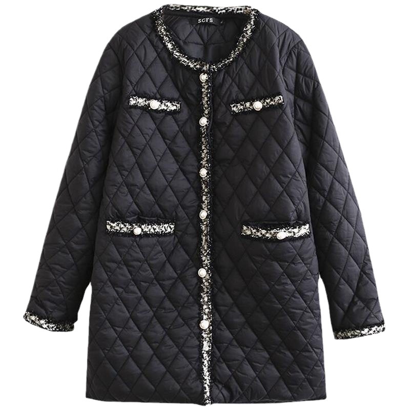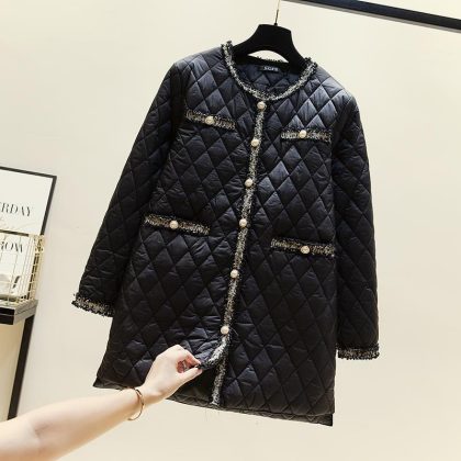 سترة نسائية مبطنة بالقطن نسخة كورية طويلة من الملابس الفضفاضة المبطنة بالقطن 2024 أخت سمينة جديدة مقاس كبير معطف نسائي صغير معطر للرياح للخريف والشتاء