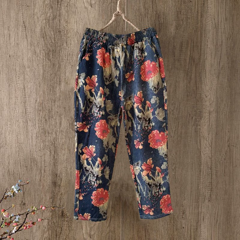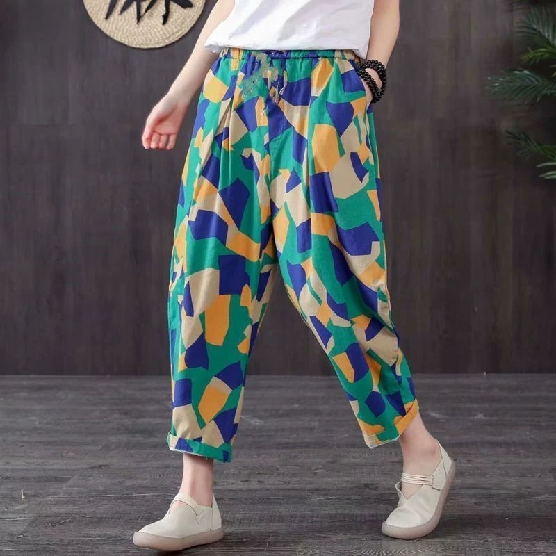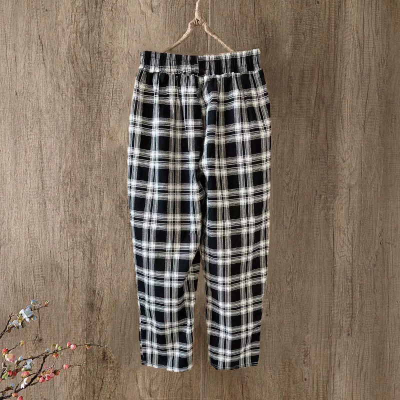 Cotton printed plaid casual slimming mother's nine-point pants
