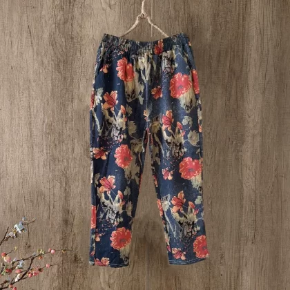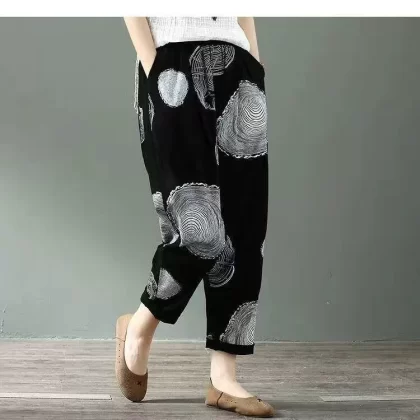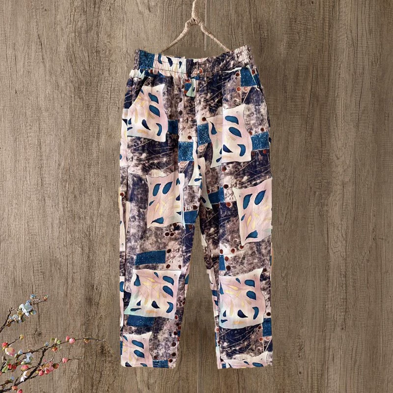 بنطلون منقوش من القطن مطبوع عليه تسع نقاط للأمهات التخسيس