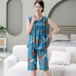 | nameOriginal | Cotton silk pajamas for women summer thin ice silk sleeveless vest mother thin suit middle-aged and elderly two-piece home clothes |