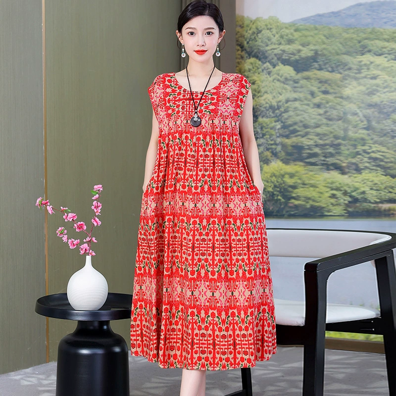 Cotton silk Shanghai high count loose skirt middle-aged and elderly women's clothing