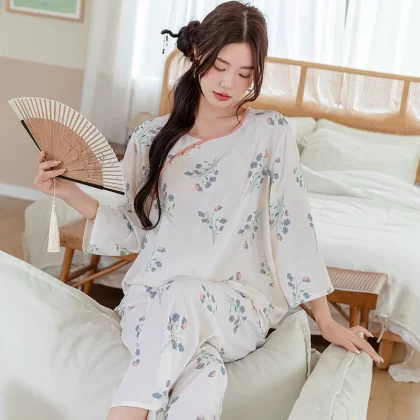 | nameOriginal | Cotton silk spring and autumn women's long-sleeved small fresh Chinese style pajamas |
