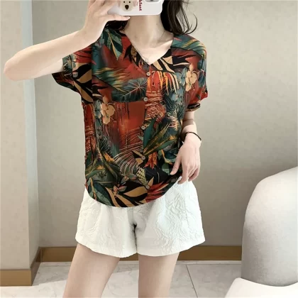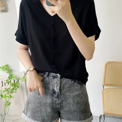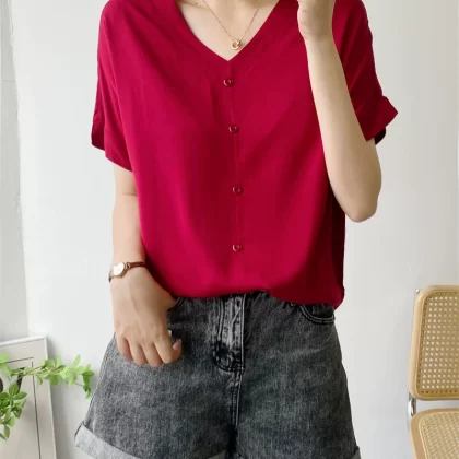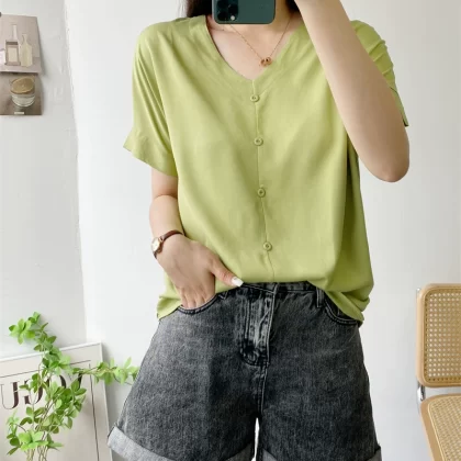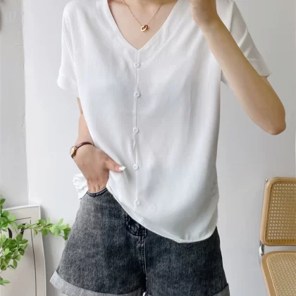 | nameOriginal | Cotton silk women's summer thin casual short-sleeved V-neck T-shirt |