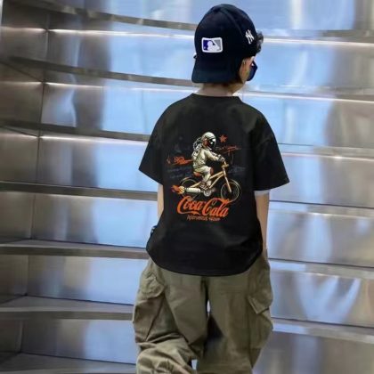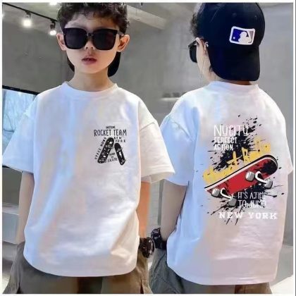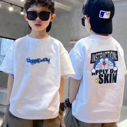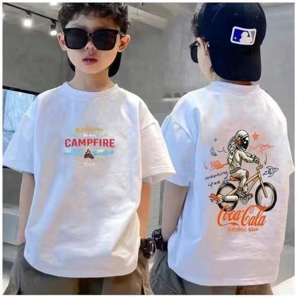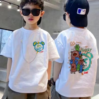 تي شيرت قطني ناعم للأطفال بأكمام قصيرة 2023 وصل حديثًا لصيف 2023 ملابس أطفال متوسطة وكبيرة للأولاد والبنات تي شيرت نصف كم على الطراز الكوري