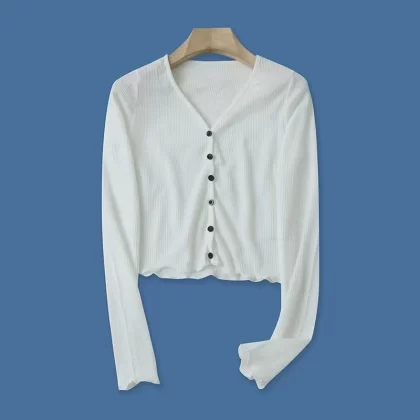 | nameOriginal | Cotton v-neck single-breasted foreign trade cardigan with earrings |