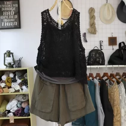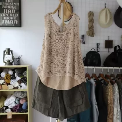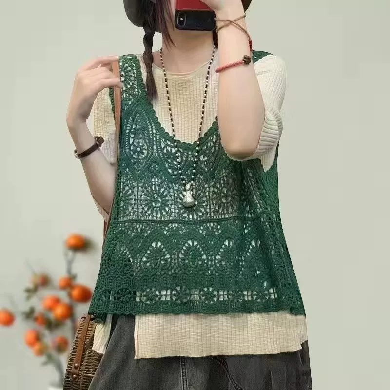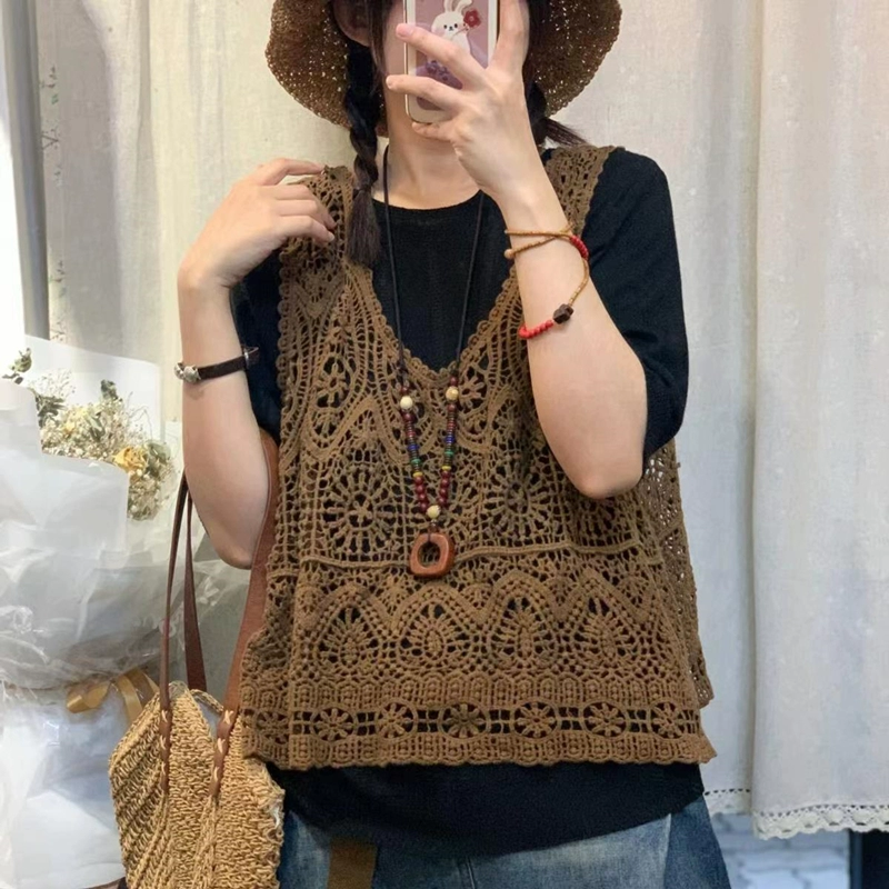 | nameOriginal | Cotton vintage loose hollow pullover knitted vest |